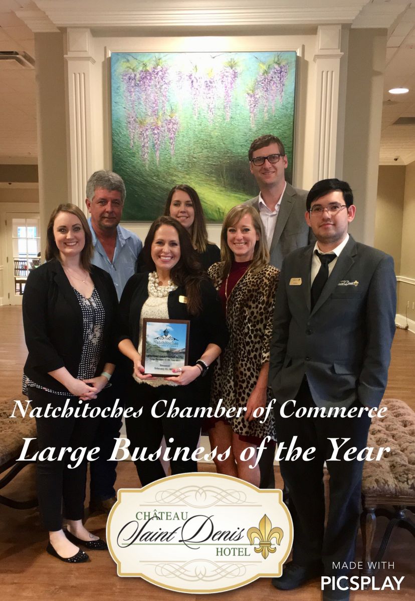 We are proud to announce that Chateau Saint Denis Hotel was named the 2017 "Large Business of the Year" by the voting members of the Natchitoches Area Chamber of Commerce.