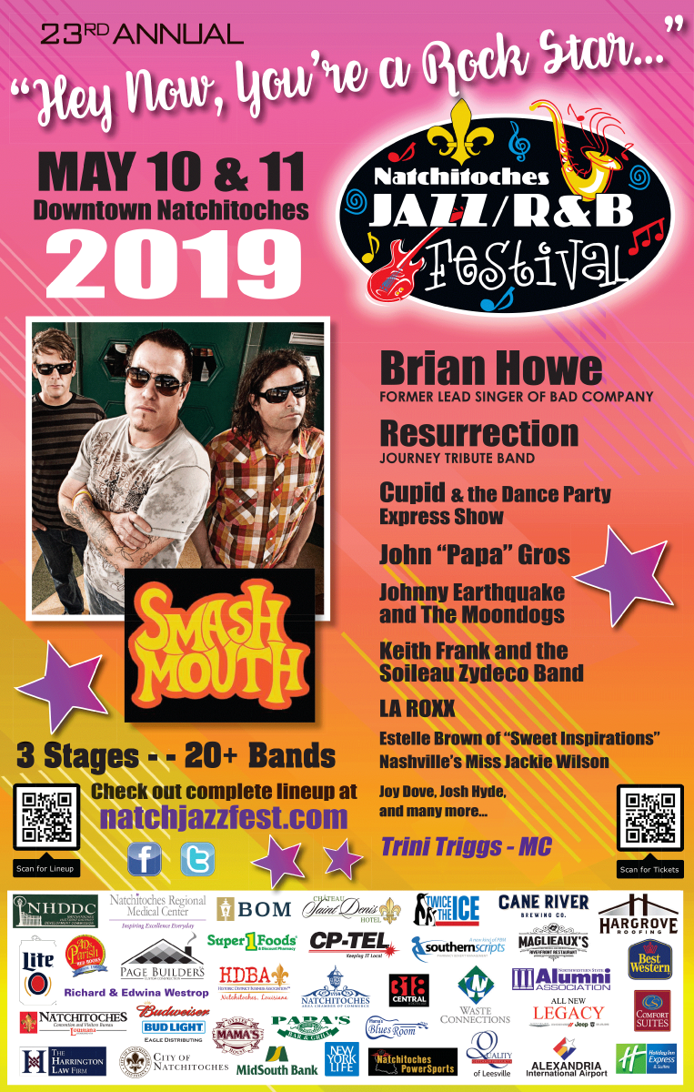 The festival features three stages with more than 20 bands with Smashmouth featured as the headliner. In addition, Brian Howe-former lead singer of Bad Company will perform as well as Resurrection, a Journey Tribute Bank. Other entertainers include Keith Frank and the Soileau Zydeco Band as well as LA ROXX. Estelle Brown of "Sweet Inspirations" will also perform.