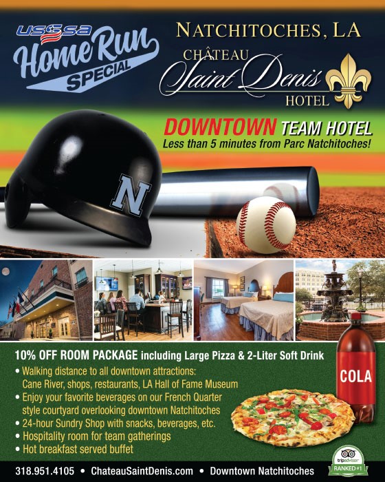 Parc Natchitoches is playing host for the 2020 USSSA World Series Warm Up XVI, July 4th weekend and Chateau Saint Denis Hotel is happy to welcome the players and fans. Guests are able to enjoy all that downtown Natchitoches has to offer from local dining, unique shopping, and outdoor river activities, while only being a short 5 min drive from the ballfields. Saturday night all guests will be treated to a famed Natchitoches firework show that will take place on the downtown riverbank. Baseball, sunshine and fireworks, a great way to celebrate Independance Day.